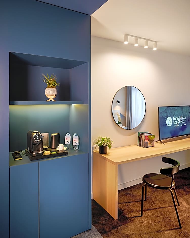 Studio Lux DBL is 269 square feet and includes a king-size bed 150-183 width plus rollaways on demand plus desk, satellite tv , cable tv, hairdryer, tea and coffee making facilities , safe, bathrobes, and slippers.